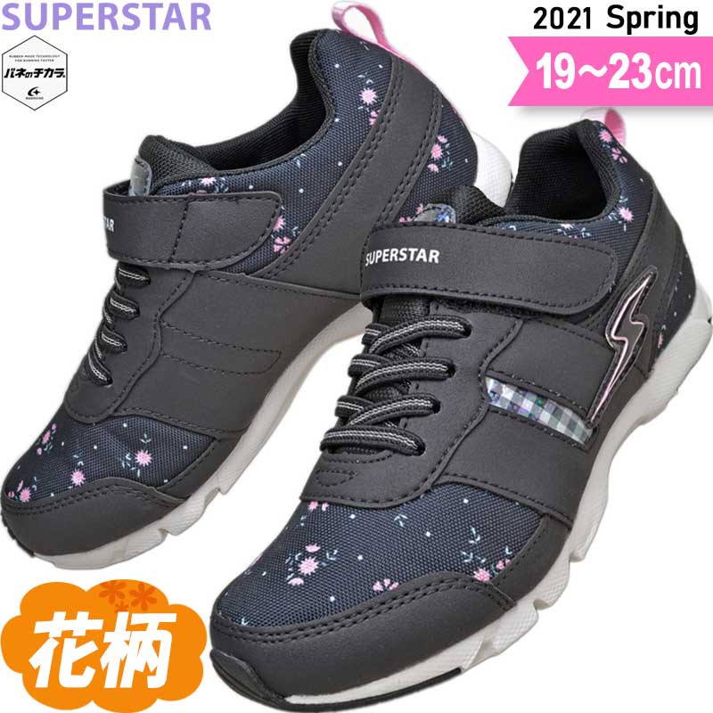 スーパースター バネのチカラ 女の子 小学生 キッズ ジュニア スニーカー 子供 靴 SS J1014 ブラック 19〜23
